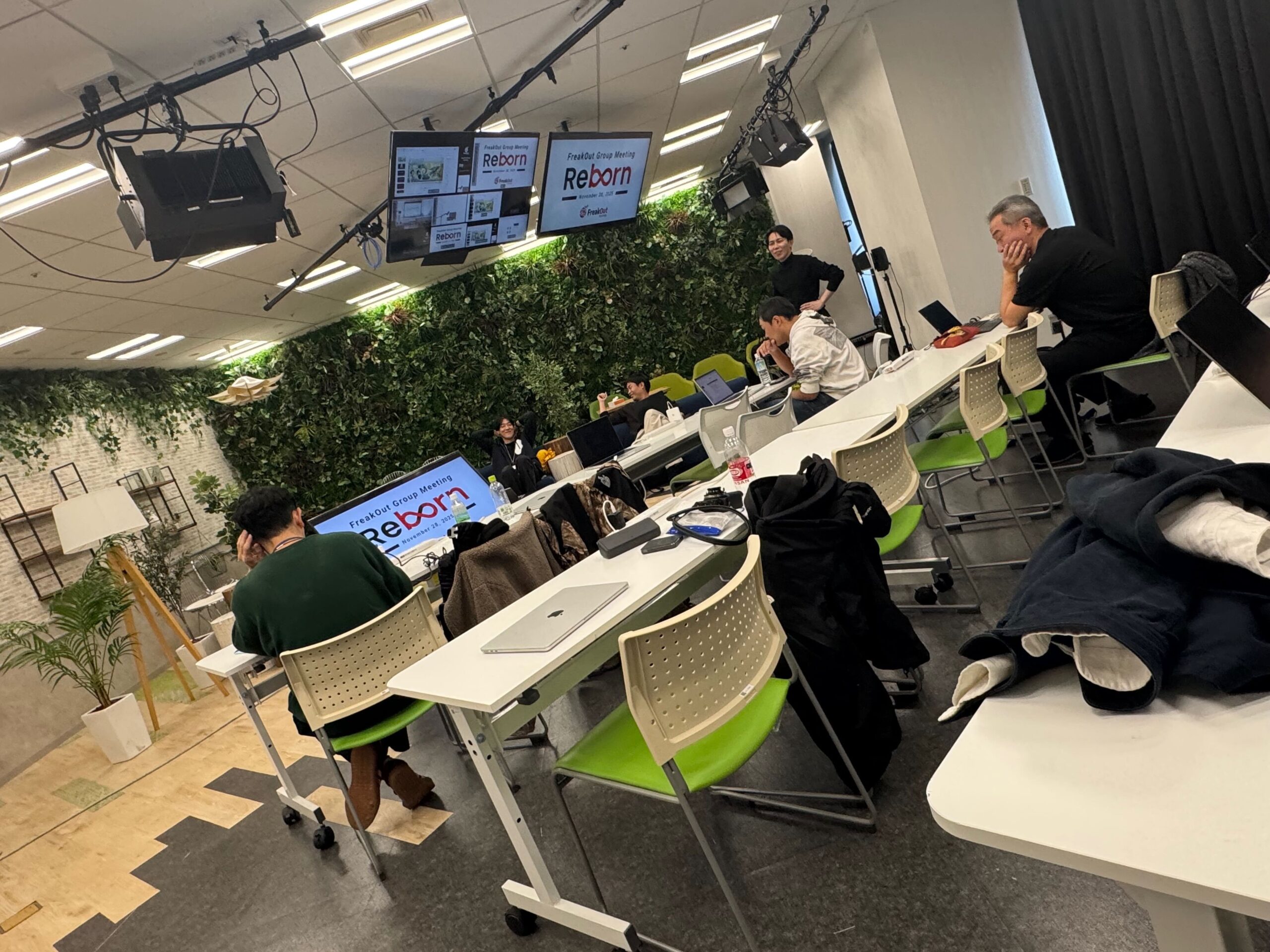 クリエイターの動画で見慣れたスタジオが控室となり、グループ各社役員同士の会話も弾みました。