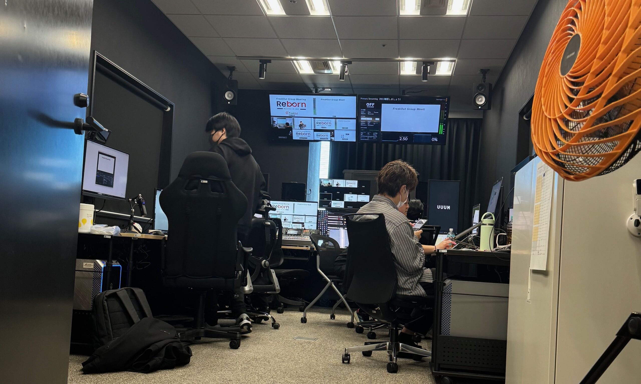 2025年11月28日(金)には、”生まれ変わる”を意味する「ReBorn」をテーマに掲げた2025下期総会を開催。当日はUUUMオフィスにあるスタジオを会場に、オンライン、オフライン合わせて500名以上の社員が参加し、グループ各部門の最新情報と今後の姿、課題を共有するとともに、AI活用の必要性やオフィス移転など多岐にわたる話題が語られました。また、今回の総会は登壇者がAIを活用して制作したプレゼンテーション資料が印象的でした。
